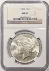 1923 Peace Dollar - NGC MS63 Multiples Available. Serial number will vary.