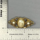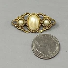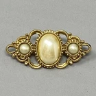 1928 Brooch Victorian Revival Bar Simulated Pearl Cabochons Gold Tone Scroll 1.5" Sizes are approximate and may vary slightly Overall good condition May show signs of wear from general use and age Most jewelry ships in Jewelry Gift Box (if it fits) for easy gift giving. We make a trip to the Post Office DAILY (M-Sat) so you can expect QUICK DELIVERY COMBINED SHIPPING: We offer combined shipping on multiple jewelry items in the same order. If shipping is not adjusted at checkout, please contact us. We list new items daily Please follow our store and check back often