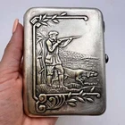 1930 Antique Collectible Cigarette Case Hunting Silver Plated Ruby Signed Dear collectors, I am o ffering a gorgeous piece from my ocean jewels collection! Unusual Antique Collectible Cigarette Case Hunting Silver Plated Ruby Signed Antique cigar case "Hunting" Rare collectible catalog cigar case of the USSR production "Hunter with a dog". Manufactured in the 1930s, the manufacturer's mark on the inner part of the sash: "Artil Peremoha Moscow". Embossed detailed image. The button is a synthetic ruby. The cigar case is made of cupric — this alloy imitates silver (silver-plated liatun). Well preserved. There are minimal traces of use, but there are no deformations, dents or corrosion. Very good clasp, closes tightly. The rubbers inside need to be replaced. There is a patina. The capacity is a standard pack of cigarettes (20 pcs). This is a great rare collectible cigar case. In very good used condition, please exam photos for all details. Dimensions: Material / Silver Plated Size / 8.5 x 10.7 cm / 3.3 x 4.2 in" Weight / 131 gr A lovely old case for any collector, it will glorify any house. This is a lovely item to own or to give as a special gift. Very beautiful. Great job. Good condition! Please review all photos closely, since they are a large part of my item description (all made with daylight, to show the color as authentic as possible). Shipping: I do ship worldwide by Registered mail With a tracking number! Shipping time takes up to 21 business days. All additional payments such as tax, are the buyer's responsibility. I ship only to the approved address that is registered in the buyer's account after payment received handling time: 3 Business days. return policy: I check each product and sell only the best quality products. In any case, if you are not satisfied with the product first, please contact me and I will do everything to your satisfaction. In any case, you have a 100% Guarantee and refund. I accepted within 14 days, In its original packaging and on condition the item in its original condition as received. buyer pays for shipping and all additional payments such as tax. feedback: I give immediate positive feedback to buyers as soon as payment is received for the purchase. In any case, of a problem contact me right away before leaving feedback so I will do my very best to resolve any problem, and to make you satisfied. Thank you for shopping