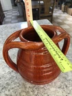 This 1930s North Carolina Cole Pottery apothecary jar/jug is a stunning addition to any collection. With a vibrant red/deep orange drip glaze and double-handled design, it is both functional and decorative. The jug measures 11 inches high and 11.5 inches wide at the handles. It has concentric runs incised horizontally around the body and unique split strap like handles It has one old tight hairline about 2.5 inches long at the rim that looks to possibly be a production or kiln flaw rather than a crack from damage or misuse. Please see photos where I’ve tried to show this. There is one shallow flake off the bottom edge and a few lighter colored spots where the glaze has popped which can be typical of this older folk pottery. This piece is a must-have for any North Carolina pottery collector +++++++++++++++++++++++++ We respectfully ask for payment within 3 days of auction close/end. The items will be carefully packed and shipped within 3 business days of confirmed payment. PLEASE NOTE: IF THE CALCULATED SHIPPING SEEMS HIGH, PLEASE MESSAGE US WITH YOUR ZIP CODE AND WE CAN PROVIDE AN EXACT QUOTE -- WE’RE LOCATED IN NEW ENGLAND SO BUYERS FROM HIGHER ZIP CODES MAY SEE VERY HIGH SHIPPING RATES VIA THE CALCULATOR. MORE THAN HAPPY TO DOUBLE CHECK SHIPPING RATE, SO DO NOT HESITATE TO ASK. Will refund postage if paid is more than .50 over actual We strive to inspect, describe, and photograph my items carefully and accurately. We are knowledgable but not experts or collectors. If you need more information, please ask. International buyers: We do not accept international returns under any circumstances. If you are unhappy with an item, please contact us so we can work something out, other than a return. Thanks for your understanding Shipping charges keep increasing and while we are happy to provide free expert packing labor and materials, we can't help with the cost of shipping. Also, International buyers, please be aware that you may have to pay import tax or customs fees upon delivery. We do not misrepresent the purchase price of items on packing slips. Buyer/winning bidder is responsible for actual shipping We pack with extreme care, but If the item arrives damaged in transit, please take a photo of the item AND the packaging and send it to us immediately. This is necessary for us to complete the paperwork for you in order to issue a full refund
