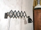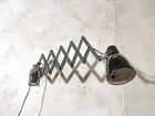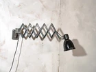 Rare Scissors lamp by SIEMENS. Wall mounted Harmonica lamp. It's got great weathered Patina. This light is an original vintage item, meaning there are signs of wear making it highly unique. Meet the best of both worlds: We've got a 1930s Scissor system by Siemens and a 1930s Enamel lampshade by Fabrilux. Unique combination of Antiques. This Unique Workshop light will defenitely boost your work space and interior! It's completely adjustable due it's Scissor system. The light holds an E27 fitting with a Lightbulb, which is included. You are able to adjust the vintage Wall lamp and shade into different angles. Rewired and added a new lightswitch on the electrical cord. Fully checked and ready for your home. SIEMENS LAMP: Make: SIEMENS Scissor system, Made in Germany. Lampshade by Fabrilux (Made in Germany in the 1930s) Model: Scissor Lamp, extendable scissor mechanism Mount: Wall mounted Color: Blue/grayish Scissor system, Black enamel lampshade Date: Circa 1930s Dimensions: Diameter lampshade: 15 CM / 5,9 INCHES Extendable up to: 120 CM / 47,2 INCHES PLEASE NOTE: ANY CUSTOM DUTY WILL BE PAID BY THE BUYER IN THEIR COUNTRY. Pick up of this item is available. Worldwide shipping. FAQ | Frequently Asked Questions: 1. **Using EU Lightbulbs with 110 Volts:** - EU lightbulbs (220V - 250V) can be used with 110V. - They will be less bright and have a longer lifespan. - The light may become slightly more yellowish. 2. **Plugging European Devices into Non-EU Electricity Networks:** - All our Vintage Lighting come with a Standard EU Electrical Plug (Type F). - Use a simple adapter (for example: EU Type F to US) to fit your socket, ensuring it is grounded. - Adapters are available online and in stores like Home Depot. 3. **Using Non-EU Lightbulbs (E27 or E14):** - Europe uses E27 Edison and E14 (smaller size) lightbulbs and sockets. - E26 lightbulbs can be used in E27 sockets. - E14 lightbulbs are available online and in many stores worldwide. Do you have any other questions? Don’t hesitate to send us a message!