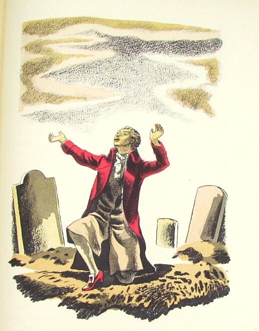 A handsome and hard-to-find 1934 Heritage Press edition in slipcase with illustrations by Everett Henry. Sturdy linen buckram with design by Henry on cover. Includes Heritage Club Sandglass brochure describing this edition. Edges of cover slightly age-darkened with some light foxing (brownish spots). Former owner's name on first blank page. Owner's blindstamp on corner of title page. Top edges purple, with lighter area near spine (sunning). Slipcase has some chips and worn spots as well as sunning along fore edge. 257 pages. Frankenstein, horror, Heritage Press, Mary Shelley, Mary Wollestonecraft, modern prometheus, Everett Henry, illustrated, illustrations, Sandglass, lmited edition, collectible, buckram, slipcase