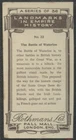 1936 Rothman's Landmarks in Empire History #22 The Battle of Waterloo Scan is of the card you will receive. We do not use stock photos. Never Have Never Will. This card is in EX condition. USA SHIPPING Shipping for this card via USPS First class mail will be $4.95 Your card will be wrapped in bubble mail and shipped in a bubble mail envelope, to offer maximum protection from damage. If you purchase additional cards using the cart feature your purchases will automatically combine with no additional shipping charges. Shipping Via EBAY Standard Envelope will be $1.35 Your card will ship in a 6" X "8 Paperboard Mail Jacket Envelope in a top loader. International Shipping We offer international shipping via EBAY's Global Shipping program only. These costs are set by EBAY not us. We offer no alternative methods of shipping internationally.