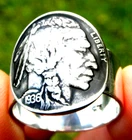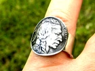 Thank you for interesting Circulated vintage Buffalo Indian nickel coin curved and soldered .925 sterling silver 10 mm ring band. Signet ring for 12 finger size. Comes with in nice gift box. You will receive similar to pictured ring Indian showing side coin ring. . I can make with Buffalo showing side if you prefer.. Please let me know when you purchase. Please check my other items I make necklaces, cuff links, and bracelets with authentic coins and customize to wrist size bracelets with genuine Buffalo Bison leather and Alligator leathers.