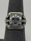 1940 Georg Jensen Sterling Wilson College Class Ring. Jensen, a famed Danish silversmith, specialized in flower and berry motifs on his creations. Working from a photograph of the College’s seal and a copy of the Alma Mater, Jensen created a design for a silver ring, embellished with pine cones and maple pods. The Wilson seal sat on a square top, outlined in blue enamel. 5.86 grams. Size 5.5. More information can be found on this link: https://www.wilson.edu/class-ringsring-it-forward FREE SHIPPING! 100% positive feedback rating.