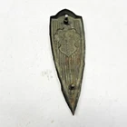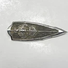 The 1940 Packard trunk emblem chrome shield is a rare vintage collectible piece from the United States. This emblem is a unique and valuable addition to any automotive collection, showcasing the iconic design and craftsmanship of Packard vehicles from the 1940s. With its great patina and historical significance, this trunk emblem is sure to be a standout conversation piece for any collector of vintage automobilia.