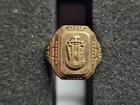 This is a 1942 10k Gold High School/College Class Ring. The emblem on front appears to have a ‘T’ on the top. Size is 4.75. Weight is (5.1 pennyweights). Anyone with additional information on where this came from, feel free to message me. With multiple auction wins we are happy to do combined shipping! All auctions have a 14 Day Return Privilege.