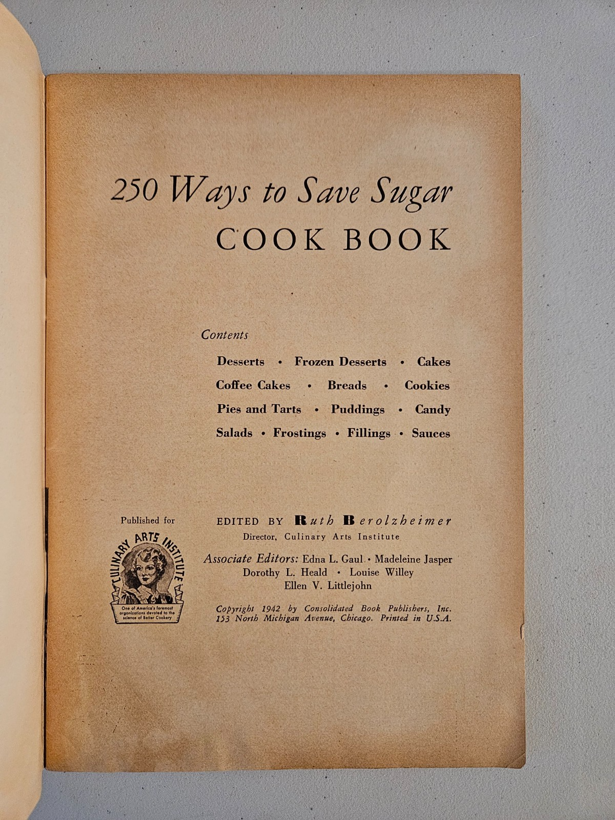 1942 250 Ways to Save Sugar Cookbook - Cooking, Canning, Baking - WWII 1942 WWII Cookbook from Culinary Arts Institute with sugar saving recipes to aid in cooking during a time Americans were rationing. The uses of honey, vanilla, maple syrup and maple sugar, sweet condensed milk, fruit juices, etc. are interesting, informative, and as usable today as they were then. Wonderful vintage cookbook in excellent condition for age. 48 pages. Measures 8 3/4" x 6". Shipped boarded and with a plastic protective sleeve. Free Shipping. Any questions or additional photo requests, please feel free to ask.