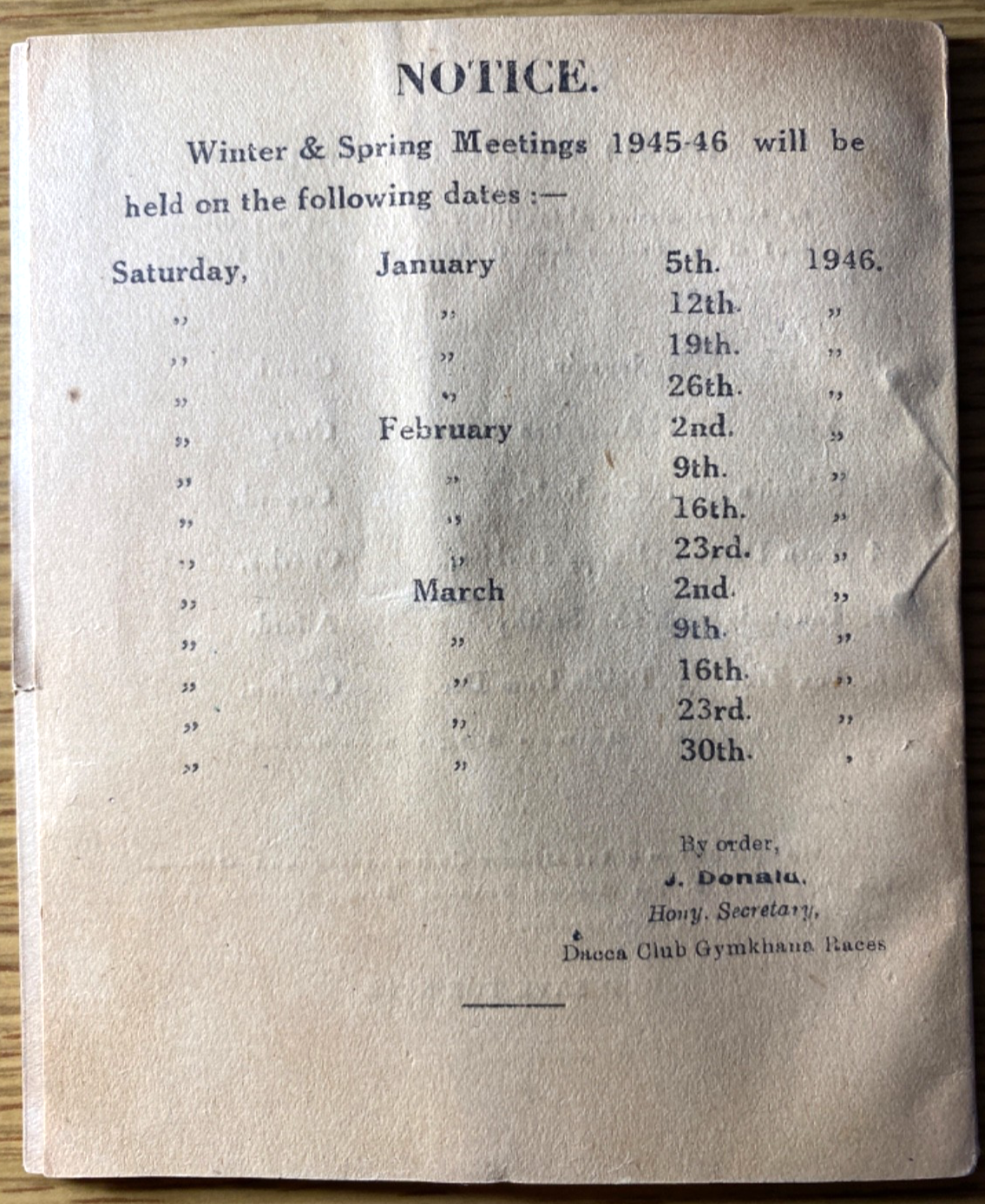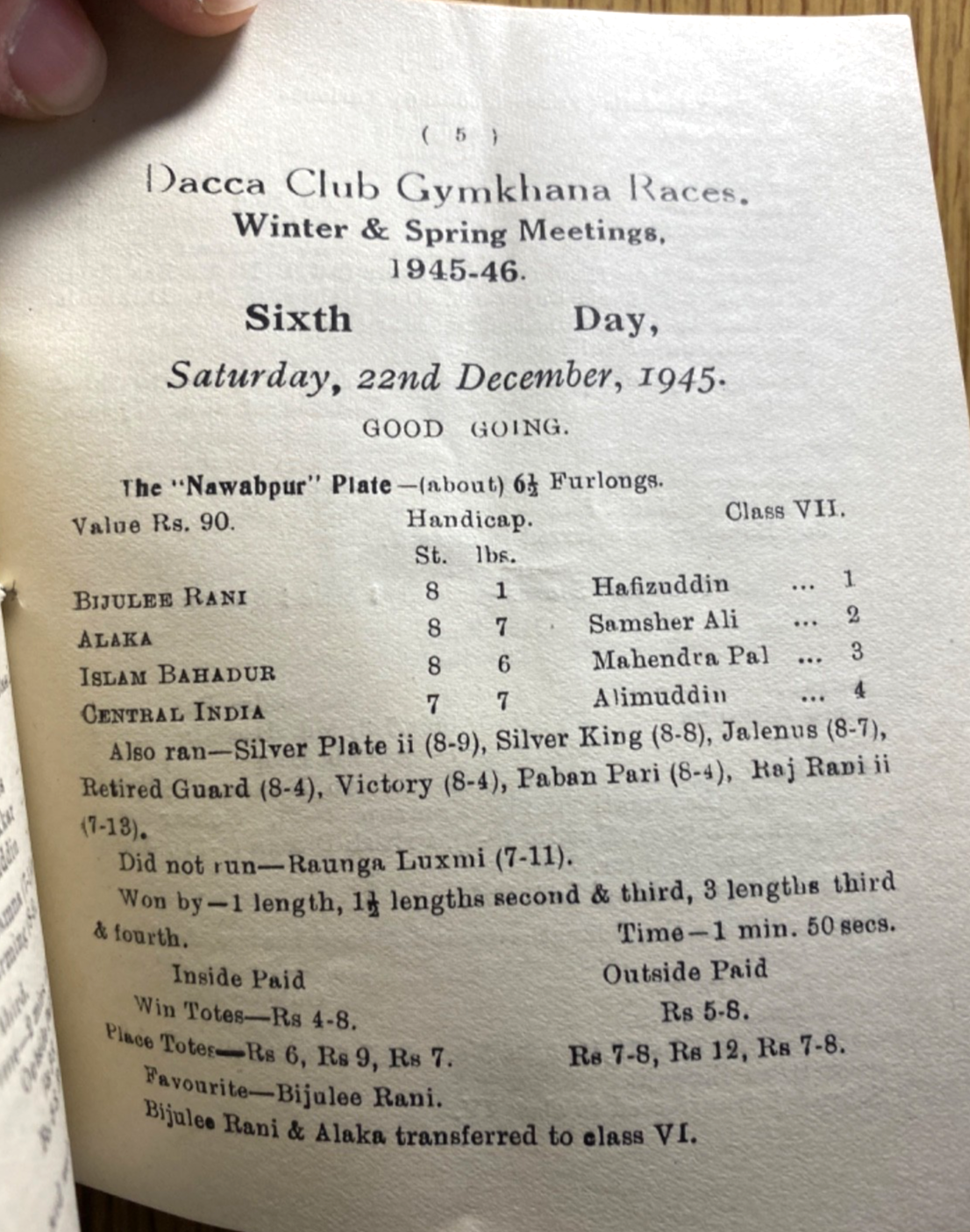 Dacca Club Gymkhana Races Vintage horse racing program 1946 January 1st Winter & Spring Meetings Size is 4.5" x 5.25" inches – 44 pages Visit our store for 2,000+ items – Thank You!