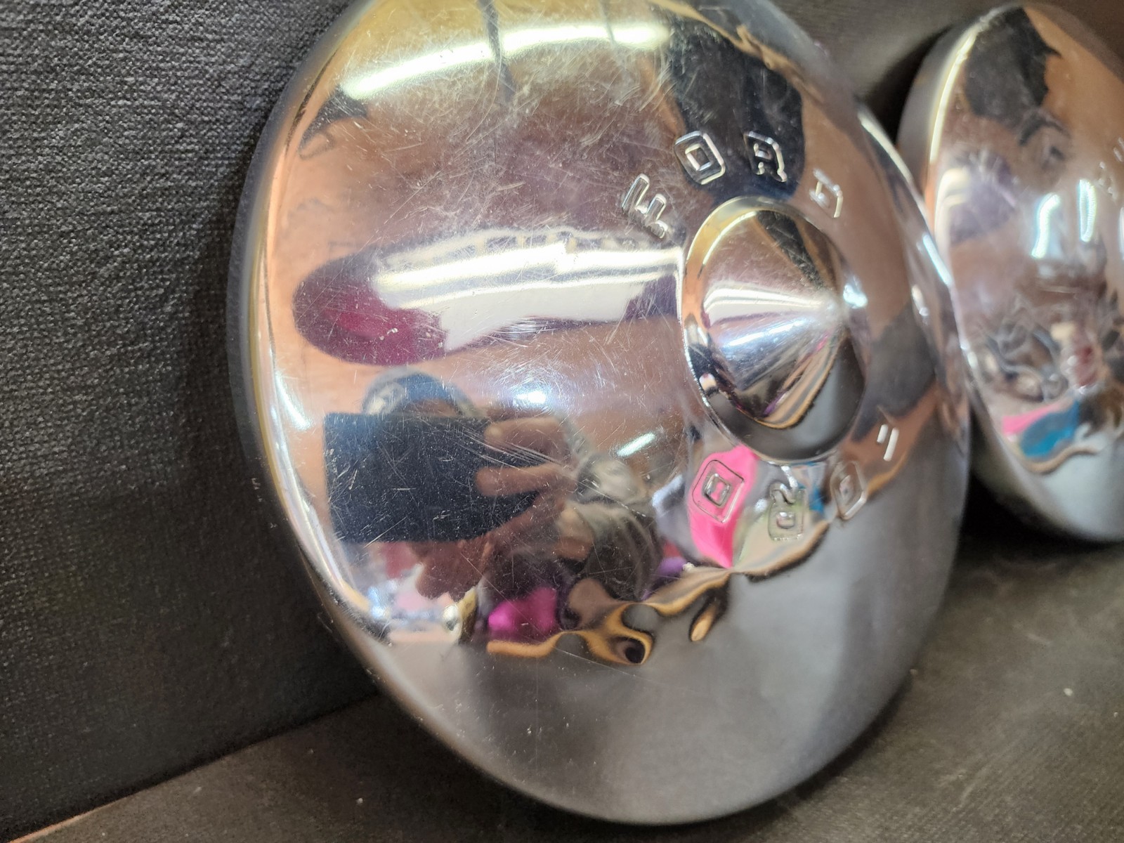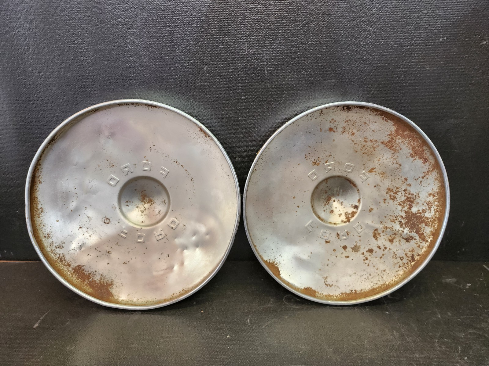 used Original OEM 49 50 51 Ford center cap lug covers. in decent condition, some light scratches & scuffs (would probably buff out) back has some surface rust, but no pin holes, some dings and dents as expexted for age and use (see pics) Measurements are in photos, please look and make sure these will fit your application. please see photos for complete condition. These are Used hubcaps off of old classic cars that were driven on the road, so please see photos for complete condition as they are not all perfect. PART # - N/A please see photos for complete condition as they are the main part of the item description. Vintage 30s 40s 50s 60s 70s 80s classic car parts. These are used parts off of old classic cars that were driven on the road and used, so please see photos for complete condition as they are not all perfect. Most have some fading, dings, scuffing, chips, scratches, mineral staining, etc. parts could use a good polishing & cleaning to bring them back to full shine. We do not offer a warranty or returns on used parts. The majority of our parts are from classic cars that have been used for decades as well as sitting unused. we do not offer returns or warranties on any used electrical parts, lightbulbs, wiring, etc. electrical parts should be considered untested and non working unless stated otherwise. we do our best to describe items and show them as accurately as possible. It is up to the buyer to look at part numbers and measurements to make sure they are the correct fit to their vehicle. Check out more of my ebay page as we are going through and listing a ton of classic / vintage car parts & hubcaps from the the 20's 30's 40's 50's 60's 70's 80's 90's 00's and up. all different makes and models such as Ford Chevy Chevrolet GM Cadillac GMC camero nova Chevelle Nomad Bel Air Mercury Corvette Mustang Oldsmobile Pontiac Lincoln Dodge Plymouth Buick Chrysler Mopar Fairlane Volkswagen Cheiftain Challanger Charger 1500 4x4 muscle car hot rod rat rod Cars and Trucks 15in 14in 16in and so much more from full sets to sets of 2 and singles, you name it check us out!