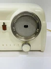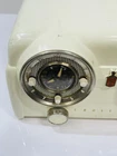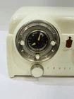 1950's Crosley D-25-WE Clock Dashboard Tube Radio, No Emblem, The radio works well, as does the alarm and plug in, The radio shows signs of wear, such as scuffs and marks, See video.