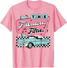 50s Rockabilly Vintage 1950s Clothing For Women Men Sock Hop T-Shirt Designed and Printed in USA Product Features: • Classic Look and Feel: This ultra cotton tee offer the timeless appeal of traditional cotton. The high-quality print enhances its casual appearance. • Material: Made from 6.1-ounce, 100% cotton. (Note: Dark Heather variant is 50% cotton, 50% polyester.) • Durability: Features double-needle stitching on the neck, sleeves, and hem for added durability. Designed for a roomy, unisex fit. • Print Type: DTG (Direct to Garment) • Manufacturer: Gildan 5000, 5000b (Made in USA) Shipping Information: • Handling Time: With POD(Print-On-Demand) product model, we typically require about 3 business-days handling time before shipping. In most cases, our handling time’s , rang e from 1-2 business days. • Delivery Time: • USA: Approximately 2 -6 business days • Canada: Approximately 6-10 business days (We currently don’t offer international Shipping) • Worldwide: Approximately 15-25 business days (We Currently don’t offer international Shipping) • Shipping Carriers: USPS and DHL • Note: Business days exclude weekends and holidays. Return & Exchange Policy: • Quality Guarantee: We stand behind the quality of our products and workmanship . Any defects or errors on our part must result in a refund/ replacement at no charge. • Conditions for Returns: Returns are generally not accepted for user errors such as incorrect selection of sizes, designs, or colors. Returns /Replacements are acceptable for damages such as poor printing results, incorrect size or design caused by us. • Note: Please reach out to us if there are any questions or issue s with your item, we’ll do our best to resolve any issue you might have. Note: • We’re glad to have your support! If you have a moment, y our honest feedback is very valuable to us. Thank you!