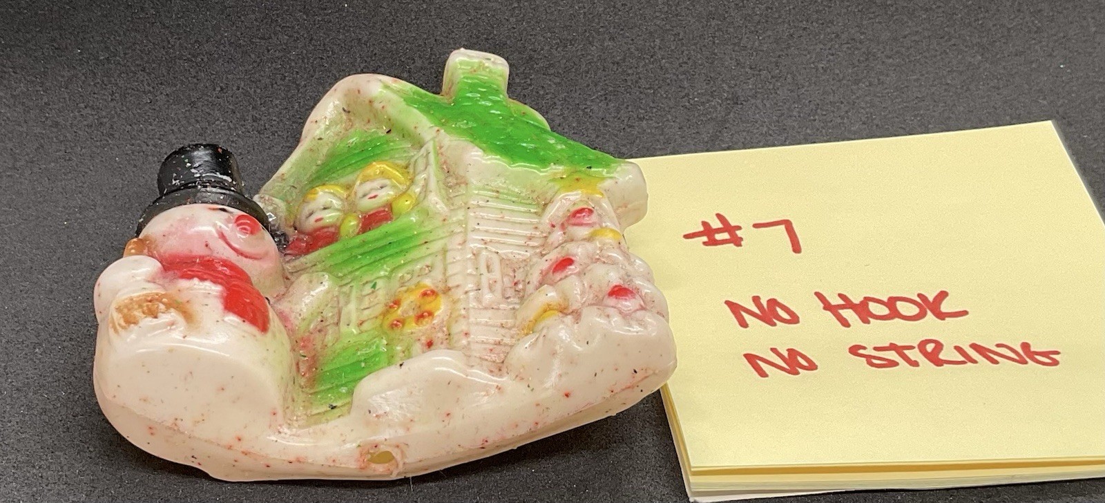 NO ORIGINAL HOOK OR STRING FOR HANGING. YOU WILL NEED TO GET AN ATTACHMENT Review pictures carefully for details Has some wear and tear Shipping next business day