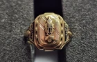 This is a 1951 10k Gold High School/College Class Ring. The emblem on front has an ‘M’ in in the center. Size is 8.25. Weight is (3.9 pennyweights). Anyone with additional information on where this came from, feel free to message me. With multiple auction wins we are happy to do combined shipping! All auctions have a 14 Day Return Privilege.