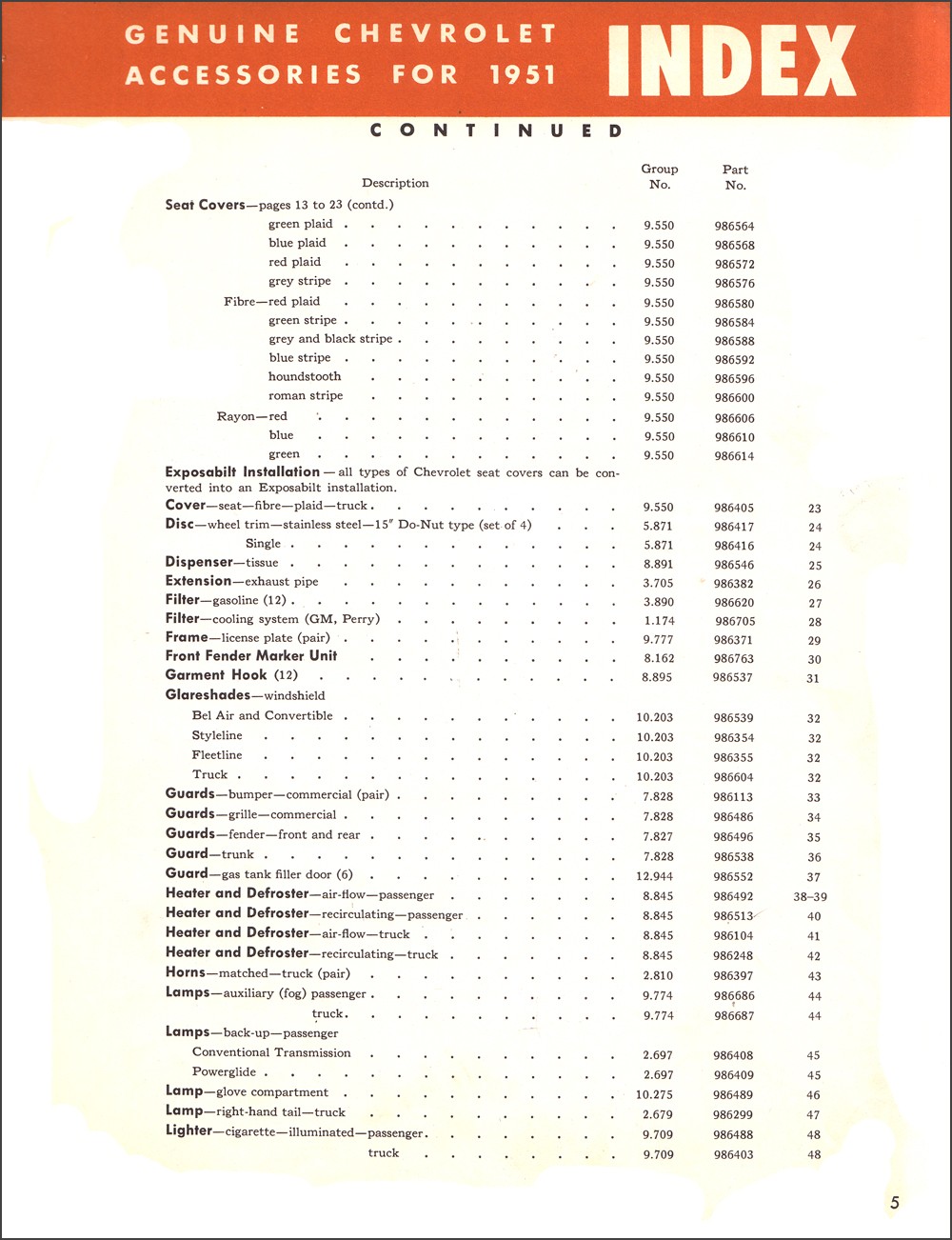 Item Description This is an illustrated accessory album that was used at the Chevy dealer. It is truly rare. This was not handed out to customers, but kept at the dealership. It's larger with longer descriptions and more items than smaller pamphlets that were handed out to customers. You can use this book to restore your vehicle to its historic best, upgrade with factory options, or to authenticate equipment already installed. You'll see color illustrations, paragraph descriptions, and even part numbers for dealer-installed accessories. You'll see accessories for safety, convenience, appearance, comfort, interior, and exterior. There are too many to list them all, but some of them include heater, radio, chrome guards, lights, seat covers, hub caps, mats, visors, ventshades, mirrors, and much more. Use this book to identify parts on your vehicle that are factory accessories, and to help you distinguish between genuine Chevy accessories and aftermarket add-ons. Find out which accessories you can add. Buy now to find out how to make your Chevy into a "loaded" model. Item Specifications author: Chevrolet Exact Title: "Genuine Chevrolet Accessories for 1952 Catalog of Product Facts and Features" Page Count: 88 Authenticity: This item is original. Dimensions: 11.00 x 8.30 x 0.35 OEM Part Number: P and A 52 Pay Media Mail shipping on 1 item, get FREE US shipping on 2nd item if shipped together. Find more in our store Click here for more 1952 Chevrolet Fleetline manuals. Click here for more 1952 Chevrolet Truck manuals. Click here for more 1952 Chevrolet Bel Air manuals. Click here for more 1952 Chevrolet Sedan Delivery manuals. Model-Year Application 1952 Chevrolet Truck 3100 Standard Cab Pickup 2-Door 1952 Chevrolet Truck 3800 Cab & Chassis 2-Door 1952 Chevrolet Truck 3800 Standard Cab Pickup 2-Door 1952 Chevrolet Truck 3600 Cab & Chassis 2-Door 1952 Chevrolet Bel Air 1952 Chevrolet Fleetline Special 1952 Chevrolet Styleline Special 1952 Chevrolet Sedan Delivery 1952 Chevrolet Truck 3600 Standard Cab Pickup 2-Door 1952 Chevrolet Truck 3900 1952 Chevrolet Truck 3700 Cab & Chassis 2-Door 1952 Chevrolet Truck 3100 Cab & Chassis 2-Door 1952 Chevrolet Fleetline Deluxe 1952 Chevrolet Styleline Deluxe 1952 Chevrolet Truck Shipping Policies Shipping U.S. Super saver postal media mail with delivery confirmation is the lowest-priced option. Media mail typically takes 7-14 business days to arrive in the continental US.. To AK, HI, PR, and APO, media mail takes a month so we recommend priority mail instead. Optionally, get this item sent to the US via postal Priority Mail with delivery confirmation for an additional cost (see details by shipping price). Please request a quote for combined Priority Mail shipping, since multiple items may require extra shipping costs. Shipping Overseas Economy shipping does NOT include tracking. Standard shipping usually includes tracking. International shipments typically take 1-3 weeks for delivery, but can take longer. Please supply a phone number with your order to ensure timely delivery of your package. Shipping Canada Shipment to Canada includes tracking. Shipment to Canada typically takes 2 weeks for delivery. Hours Open 7:30 am to 4:30 pm pacific time weekdays. Closed Saturdays, Sundays and holidays. Finally, Buy With No Risk from the Auto Literature Experts Pledge of Honesty We are a high tech company with old-fashioned integrity. Our Promise of Value: When you buy from Faxon, you know that the book you get will cover the years and content listed in the long description. We got to be the largest sellers of out of print auto books by becoming the experts on what you need to get your project on the road. Our Assurance of Security: We have never sold or shared a phone number, email address, or street address. We have never had a credit card number stolen. Your personal information is safe with us. Backed by More than Forty Years of Professional Experience: For more than forty years, we have been researching auto literature. We have built a library of rare manuals and compiled lists of manuals that exist. No other company has invested so much time and effort to find the best book for your vehicle. We buy from every major printer in the US in order to offer you the finest quality books and the best selection anywhere. Powered by SixBit's eCommerce Solution