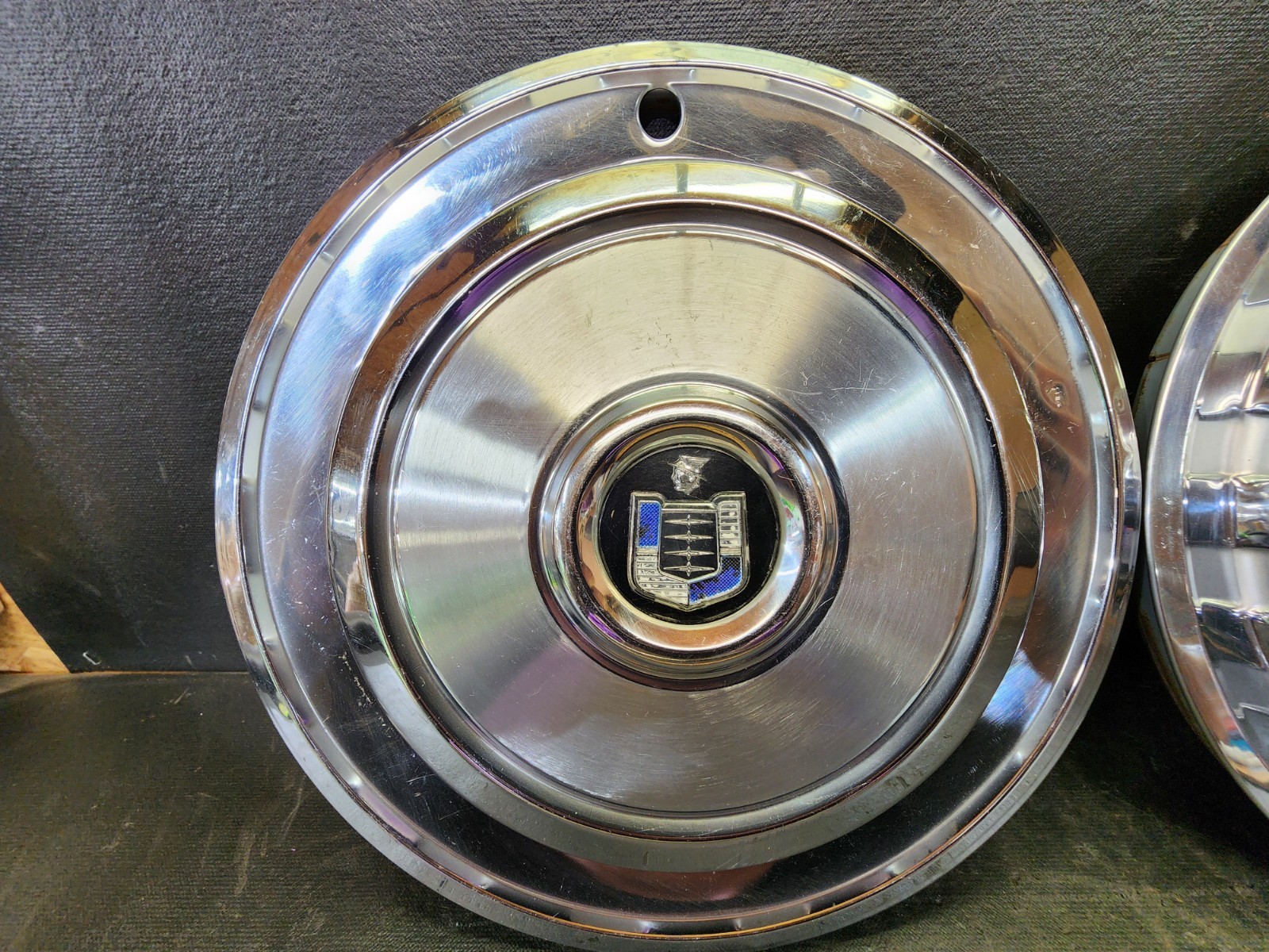 used Original OEM 57 58 Mercury 14" Hubcaps pair qty 2. 1 is In good condition, some dings, scuffs, and light scratches as expected for age and use. The other has some curbrash and the paint inside center piece is mostly gone. (see pics) Measurements are in photos, please look and make sure these will fit your application. please see photos for complete condition. These are Used hubcaps off of old classic cars that were driven on the road, so please see photos for complete condition as they are not all perfect. PART # - N/A please see photos for complete condition as they are the main part of the item description. Vintage 30s 40s 50s 60s 70s 80s classic car parts. These are used parts off of old classic cars that were driven on the road and used, so please see photos for complete condition as they are not all perfect. Most have some fading, dings, scuffing, chips, scratches, mineral staining, etc. parts could use a good polishing & cleaning to bring them back to full shine. We do not offer a warranty or returns on used parts. The majority of our parts are from classic cars that have been used for decades as well as sitting unused. we do not offer returns or warranties on any used electrical parts, lightbulbs, wiring, etc. electrical parts should be considered untested and non working unless stated otherwise. we do our best to describe items and show them as accurately as possible. It is up to the buyer to look at part numbers and measurements to make sure they are the correct fit to their vehicle. Check out more of my ebay page as we are going through and listing a ton of classic / vintage car parts & hubcaps from the the 20's 30's 40's 50's 60's 70's 80's 90's 00's and up. all different makes and models such as Ford Chevy Chevrolet GM Cadillac GMC camero nova Chevelle Nomad Bel Air Mercury Corvette Mustang Oldsmobile Pontiac Lincoln Dodge Plymouth Buick Chrysler Mopar Fairlane Volkswagen Cheiftain Challanger Charger 1500 4x4 muscle car hot rod rat rod Cars and Trucks 15in 14in 16in and so much more from full sets to sets of 2 and singles, you name it check us out!