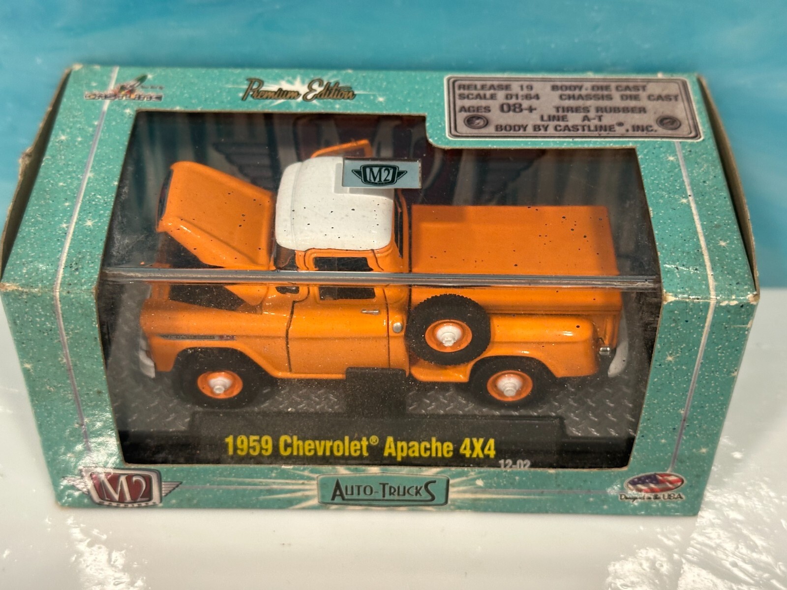 1959 Chevrolet Apache 4 x 4 Truck M2 Machines Factory Sealed 1/64 Factory Sealed!! NEW WARNING: NOTE THAT ALL TRUCKS & CARS WE SELL HAVE SMALL PARTS AND POSE A CHOKING HAZARD. THE SALE OF ALL OUR ITEMS ARE INTENDED FOR ADULT COLLECTORS ONLY.