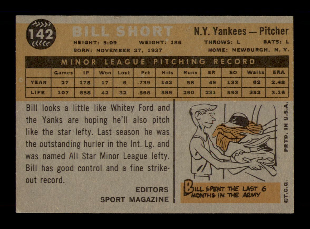 1960 Topps #142 Bill Short EX-MINT Baseball Card from Set Break by OBGcards