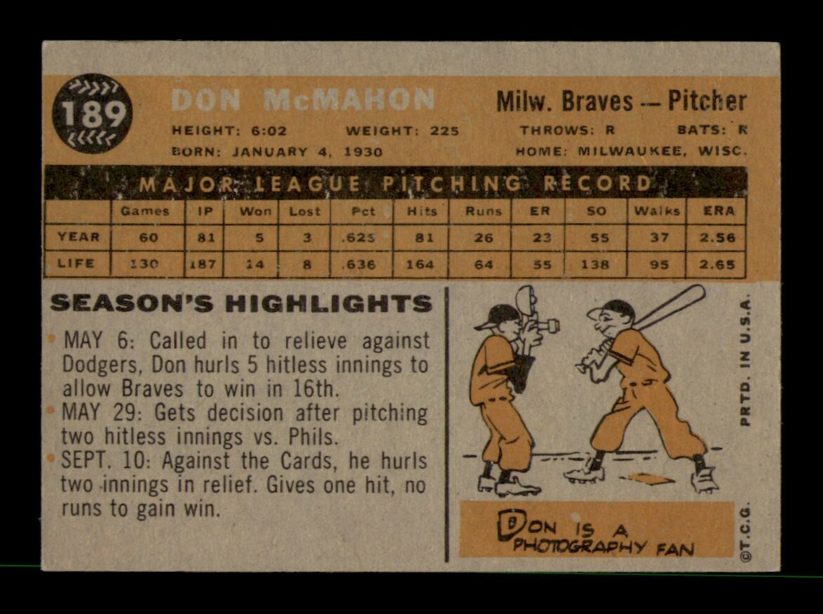 1960 Topps #189 Don McMahon EX-MINT Baseball Card OBGcards