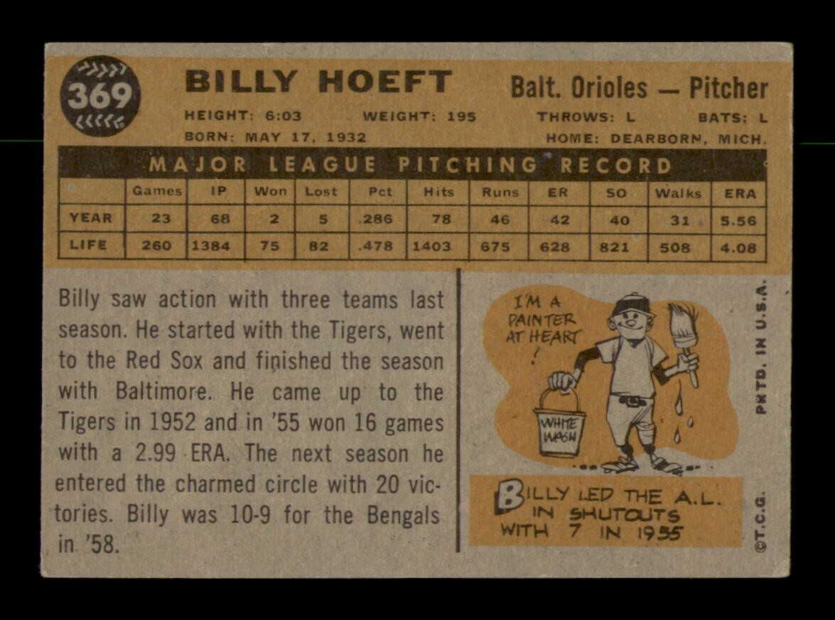 1960 Topps #369 Billy Hoeft EX Condition by OBGcards
