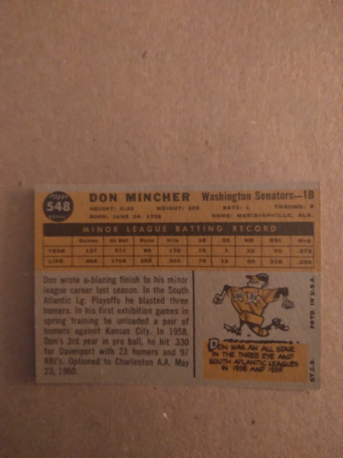 1960 Topps #548 Don Mincher Condition is Excellent to Near Mint Tough high number card Shipping discount applied for multiple card purchases.