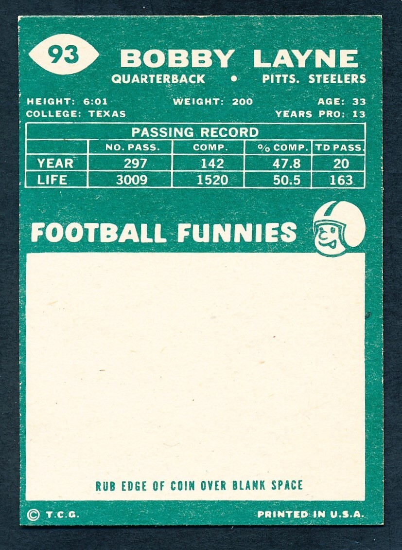 This card is a true gem—1960 Topps Bobby Layne in fantastic NRMT/MT condition! A must-have for vintage football collectors. Shipping is a steal at just $4.50, and checkout is a breeze with PayPal. Robbie’s Cards makes buying easy and reliable. Don’t miss out on this piece of history—check out their other great finds too!