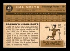 Team: Varies Player: Hal Smith Graded: No Series: Varies Original/Reprint: Original Season: 1960 Year: 1960 Sport: Baseball Card Number: 48 Card Manufacturer: Topps