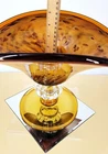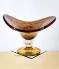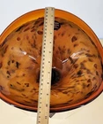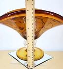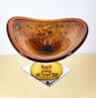 BRAND: White Cristal Hand Blown in Italy, Murano Style, Large Heavy Pedestal (Compote) Bowl with Original Sticker from 1960. Stunning Mid-Century High Quality Art Glass. This piece has been used for display only and is unused as a bowl. It is a fine example of the Art Glass produced in MCM Italy. LOC/G-1 (Upper) COLORWAY: Honey Amber and Brown with an Iridescent Effect over the entire Bowl. Clear Grooved Orb joining the bowl to the Compote foot base. SIZE: Approximately 12" Long, 10.5" Wide, 5" Deep in Center, 8" Tall and the Footed Base is 5" Across. CONDITION: This gorgeous piece of Mid-Century Art Glass is a rare find from the 1960s Italian Blown Glass. The colors flow in a rich amber which was so popular in that era. The condition is excellent with no signs of crack or chips. Please see my photos for exact detail. This is a wonderful addition to any art glass collection!