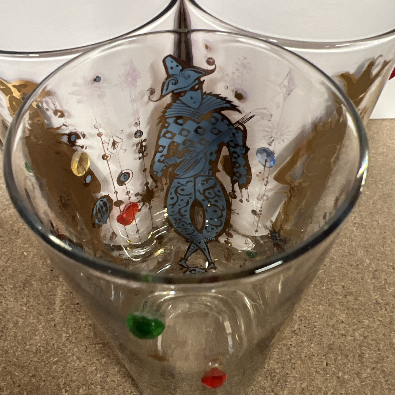 6 CULVER 1960’s 22 KT HARLEQUIN JESTER BEADED JEWELED TUMBLERS - VINTAGE. Condition is Used. Shipped with USPS Ground Advantage.