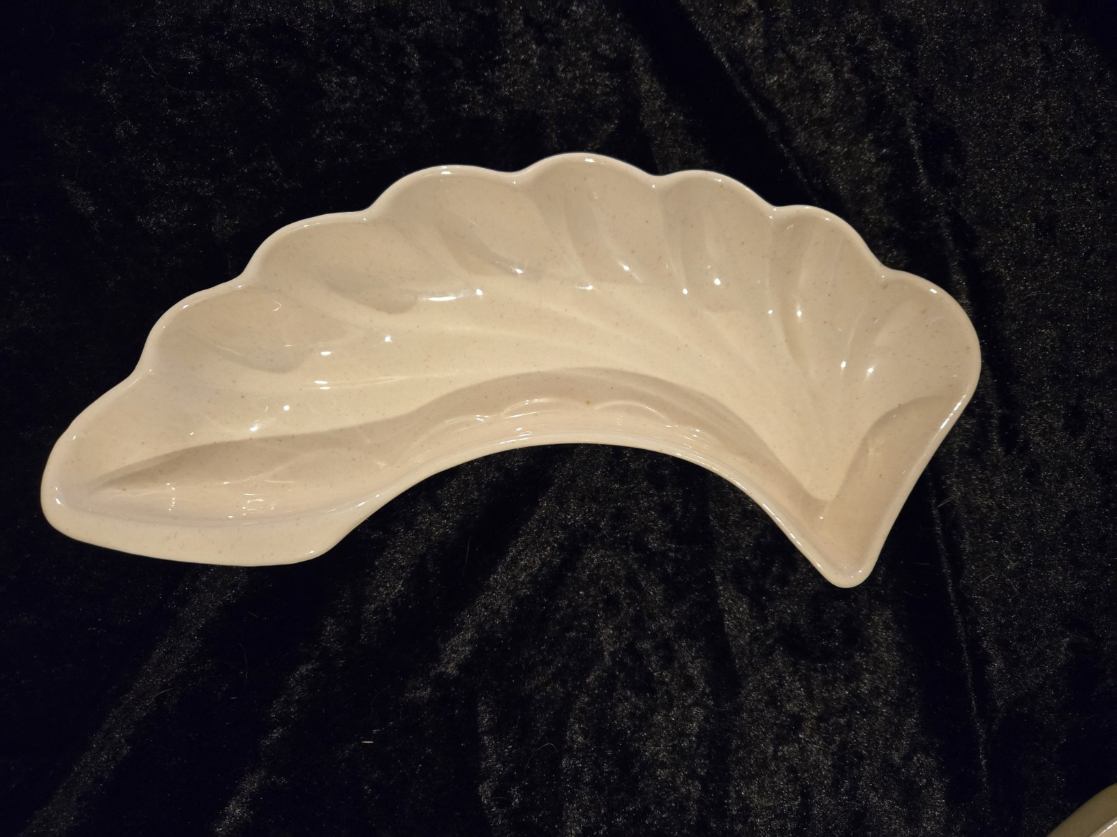 Crafted in the heart of California during the 1960s, this Lane and Co. tray is a true embodiment of the era's aesthetic. With its glossy white finish and solid pattern, the tray exudes a clean and classic Mid-Century Modern style, perfect for serving up fresh fruits, veggies, or snacks. Its round shape and three compartments offer a functional yet elegant presentation, making it a versatile addition to any American-themed collection. The tray's ceramic construction ensures durability, while the impressed backstamp attests to its authenticity as an original piece from Lane and Co. Renowned for its quality art pottery, the United States-made tray is a testament to the craftsmanship of the period. Whether used for special occasions or displayed as a decorative piece, this vintage tray is a timeless treasure from the past.