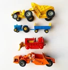 PLEASE READ BEFORE PURCHASE! Up for sale is a 1960s Vintage MATCHBOX Lesney collection of 4 different toy vehicles including: Blue Ford Tractor #39 along w/ Blue Hay Trailer attachment #40 (wheels on both are all present and accounted for but very loose), Yellow Curtiss-Wright tractor KING SIZE #7 & Rear Dumper CWD 321, Red & Yellow KING SIZE Case Tractor #K-17 (missing tracks), and Orange KING SIZE #6 Allis-Chalmers Motor Scraper (which is in good shape but missing a few small parts). Original wheels are all present but occasionally come loose which seems to be a common issue with Matchbox toy vehicles of this age. Paint on all vehicles seems to be pretty nice with some minor paint wear. PLEASE SEE PICTURES FOR FURTHER DETAILS! Shipping is $8.99 USPS Ground Advantage w/ Delivery Confirmation in the U.S. Please take a look at the other great items that I have listed currently on eBay! I’m not offering combined shipping on my current listings at this time since all listings have been individually packed in advance for shipping. Thanks for understanding. All of my items come from a smoke free home. Please feel free to contact me with any questions. And please do not purchase if you dislike any of the terms listed above! U.S. buyers only please!! Thanks for taking a look!!!