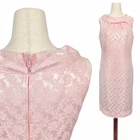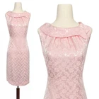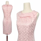 ✦FOR SALE: 1960s Brocade Dress. This delicate pink 60s vintage dress features a gorgeous atomic era space age wing tip collar & a beautiful, intricate threaded flower pattern. The dress has a lovely illustrious sheen. Zips up the back. Shift shape, shown clipped to fit XS mannequin - swipe to see unclipped. No tags/labels or stretch. Fits a Small / Medium. 36-37" Bust, 34" Waist, 38" Hips. • ✿ Measurements lying flat in inches: • •Shoulders: 12 •Bust: 18-18.5 •Waist: 17 •Hips: 19 •Length: 37