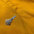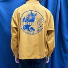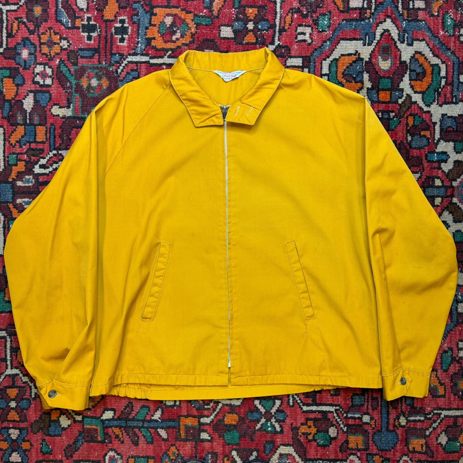 Title: 1960s Collegiate Pacific 'Daiwa Fishing' Graphic Harrington Jacket Manufacturing details: Made in USA Fit: Slightly cropped, Boxy body Dimensions (inches): 26.5x27.5 On Body: Model is 5’11 Flaws: Discoloration along front body, sleeves, and back body