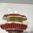 Double sided napkin or letter holder made in 1969 by New Designs Inc. in the United States. No chips or cracks. The inside edges are rough but I think it’s because of how it’s made. It measures 7 by 2 x3.50 inches. It has the original paper label. Color is good.
