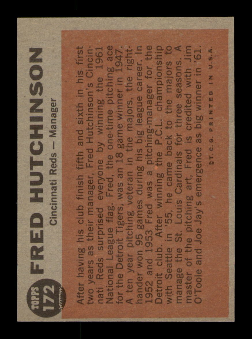 $ 2.111962 Topps #172 Fred Hutchinson Manager EX Condition from OBGcards