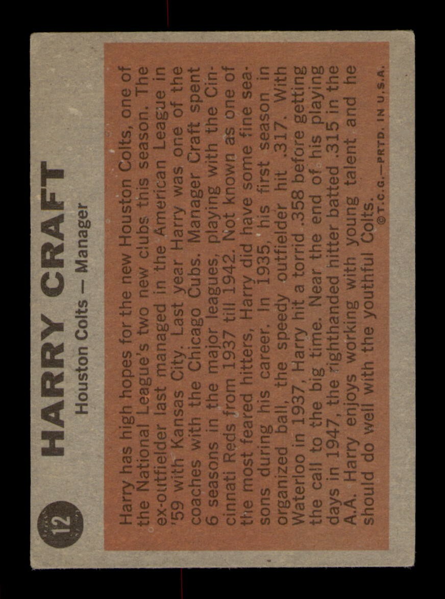 $ 2.641962 Topps #12 Harry Craft Manager VG OBCards Vintage Baseball