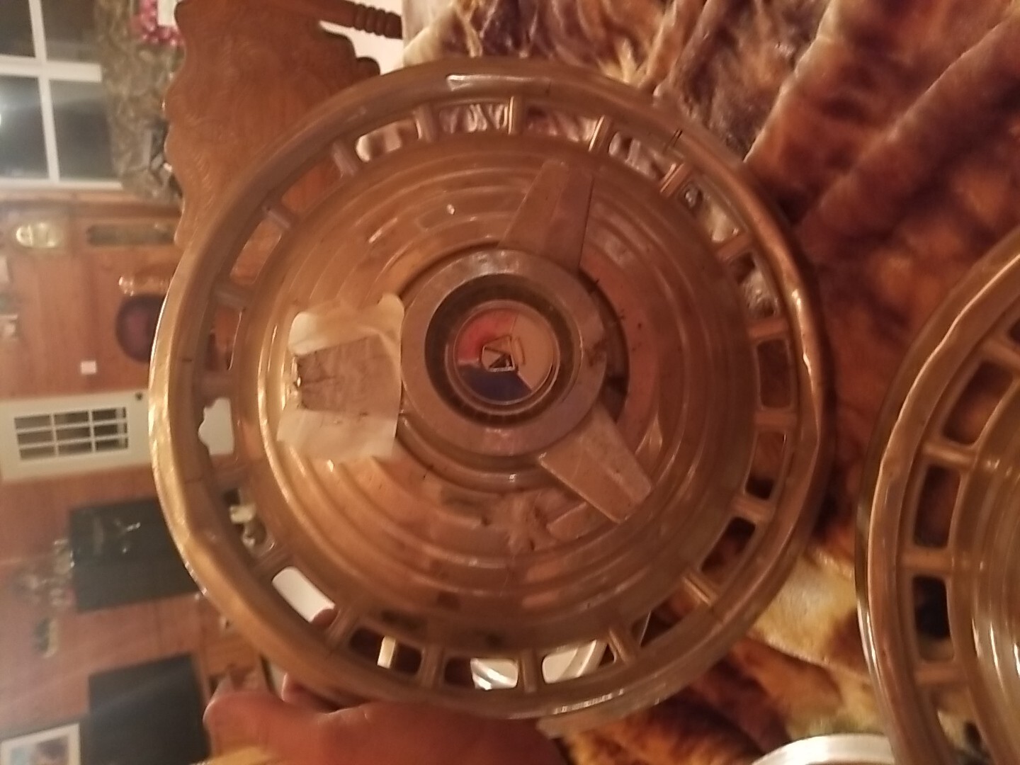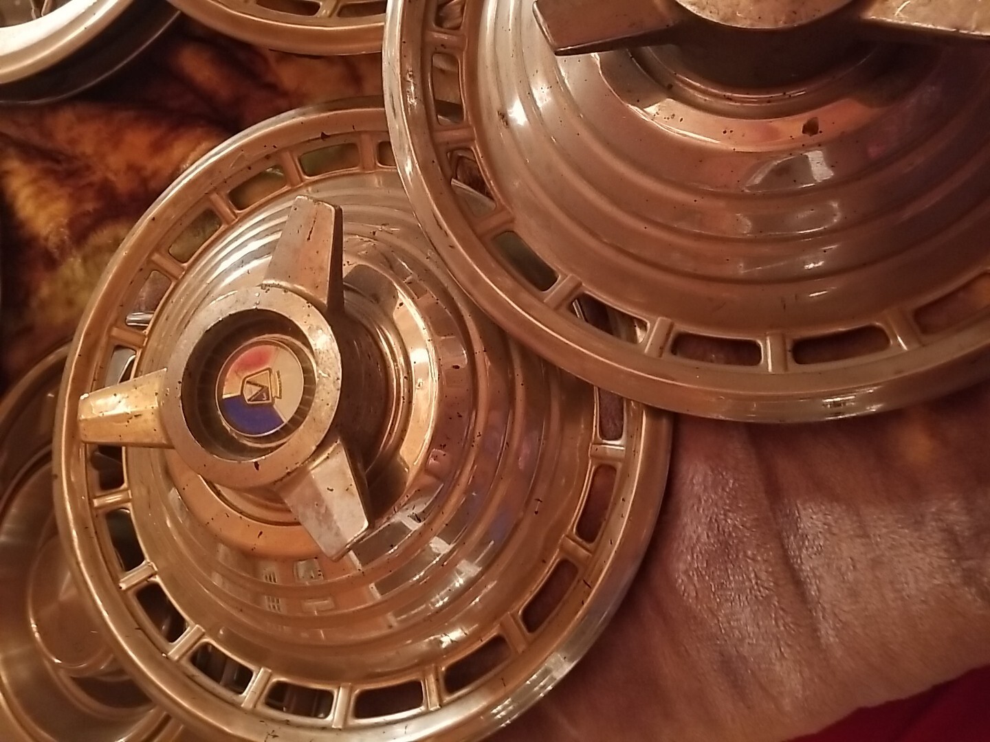 This vintage Ford Galaxie hubcap with spinner is a solid find! The red, white, and blue emblem still pops, and while it shows some wear, it cleans up nicely. Perfect for a restoration project or adding retro flair to your ride—great value for an OEM piece!