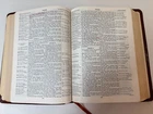 • Leather-bound cover with gold embossed lettering • Includes Thompson's numerical chain reference system • Contains maps, outlines, and analytical tools • Printed by B.B. Kirkbride Bible Co., 1964 • 55th reprint edition • Includes Old and New Testaments • Ribbon page marker for convenience • Easy-to-read layout and font Minor scuffs on spine edges, otherwise in good condition. Measurements: 9.5 x 7 x 1.5 inches.