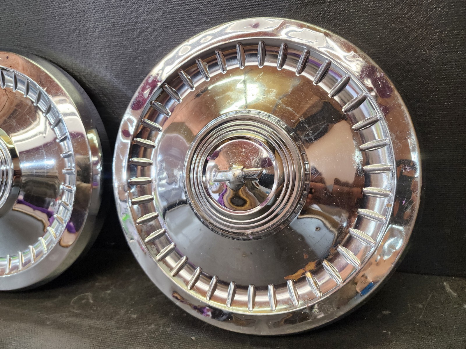 used Original OEM PAIR QTY(2) 64 65 66 67 Chevrolet wheel center cap lug cover. in decent shape considering age and use. there is some scratches, dants, and dings, as expected for age and use. (see pics). Measurements are in photos. Please look and make sure these will fit your application. please see photos for complete condition. These are used hubcaps off of old classic cars that were driven on the road, so please see photos for complete condition as they are not all perfect. PART # - N/A please see photos for complete condition as they are the main part of the item description. Vintage 30s 40s 50s 60s 70s 80s classic car parts. These are used parts off of old classic cars that were driven on the road and used, so please see photos for complete condition as they are not all perfect. Most have some fading, dings, scuffing, chips, scratches, mineral staining, etc. parts could use a good polishing & cleaning to bring them back to full shine. We do not offer a warranty or returns on used parts. The majority of our parts are from classic cars that have been used for decades as well as sitting unused. we do not offer returns or warranties on any used electrical parts, lightbulbs, wiring, etc. electrical parts should be considered untested and non working unless stated otherwise. we do our best to describe items and show them as accurately as possible. It is up to the buyer to look at part numbers and measurements to make sure they are the correct fit to their vehicle. Check out more of my ebay page as we are going through and listing a ton of classic / vintage car parts & hubcaps from the the 20's 30's 40's 50's 60's 70's 80's 90's 00's and up. all different makes and models such as Ford Chevy Chevrolet GM Cadillac GMC camero nova Chevelle Nomad Bel Air Mercury Corvette Mustang Oldsmobile Pontiac Lincoln Dodge Plymouth Buick Chrysler Mopar Fairlane Volkswagen Cheiftain Challanger Charger 1500 4x4 muscle car hot rod rat rod Cars and Trucks 15in 14in 16in and so much more from full sets to sets of 2 and singles, you name it check us out!