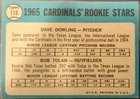 This 1965 Topps #116 Bob Tolan/Dave Dowling Rookie Stars trading card is a must-have for any Major League Baseball fan. Featuring the St. Louis Cardinals player, this card is a part of the base set and has been well-preserved, ensuring its originality and quality. The card is ungraded, but its value is evident in its design and manufacturing by Topps. The card is a single product from the 1965 season and is a part of the Rookie Stars parallel/variety. Its authenticity is guaranteed, and it is a great addition to any sports trading card collection. This card is a part of the post-WWII era and is an original piece manufactured by Topps.