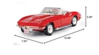 Ready for a classic ride? Jump behind the wheel of the stunning 1967 Chevy Corvette Convertible and experience the rugged feel of this unforgettable classic! This '67 Corvette comes with distinct front fenders, slotted rally wheels, and a power bulge. Under the hood lies a V8 that whips up 327hp. This 1967 Chevrolet Corvette is a 1/24 scale diecast model, finished in blazing red with openable doors and workable steering. A great choice for your sportscar collection, especially if you happen to be a Corvette fanatic (and who isn't?!). Features: -- 73224 Showcasts - 1967 Chevrolet Corvette Convertible. -- 1/24 scale diecast model car. 7.25" long x 3"W x 2"H. -- Opening doors/hood, workable steering, and free wheel action. -- This 67 Chevy Corvette is manufactured by Motormax for Showcasts Diecast Collectibles. -- GM is a trademark of the General Motors Corporation. 1/24 scale diecast model car. 7.25" long x 3"W x 2"H. Opening doors/hood, workable steering, and free wheel action. This 67 Chevy Corvette is manufactured by Motormax for Showcasts Diecast Collectibles.