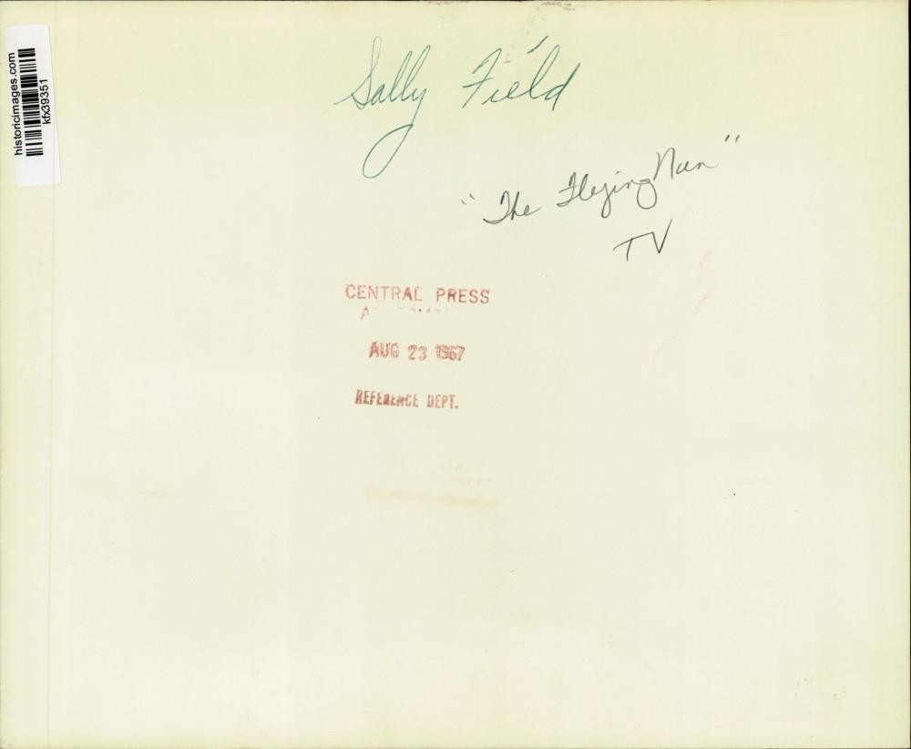 ebay template Note: Please study the images carefully to determine the condition of this vintage photograph, as it may not be in perfect condition. It may contain wrinkles, cracks, and possibly even tears due to its age and how it was handled before it got to us. A scanner may interpret colors and contrast differently than human eyes will, so it is possible that the actual photograph may be slightly darker or lighter in person. This vintage photograph is offered for sale as a collectible item and conveys no transfer of copyright. 1967 Press Photo Actress Sally Field as "The Flying Nun" - kfx39351 This is an original press photo. Sally Field as "The Flying Nun." TV seriesPhoto measures 10 x 8.25inches. Photo is dated 08-23-1967. PHOTO FRONT PHOTO BACK Historic Images Part Number: kfx39351 Sell Smarter with Kyozou. Inventory and Ecommerce Management