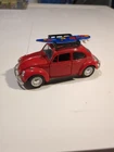 This 1:32 scale diecast model of a 1967 Volkswagen Beetle from SUNNYSIDE is the perfect addition to any car enthusiast's collection. The iconic yellow and red color scheme and surfboard on top make this model a unique and eye-catching piece. It's perfect for display or play, and sure to bring a smile to anyone's face. The detail on this model is remarkable, with every aspect carefully crafted to capture the essence of this classic car. The Volkswagen Beetle is a beloved car around the world, and this model is a great representation of its enduring charm. Add it to your collection today and enjoy the timeless appeal of this iconic vehicle. See pics for condition
