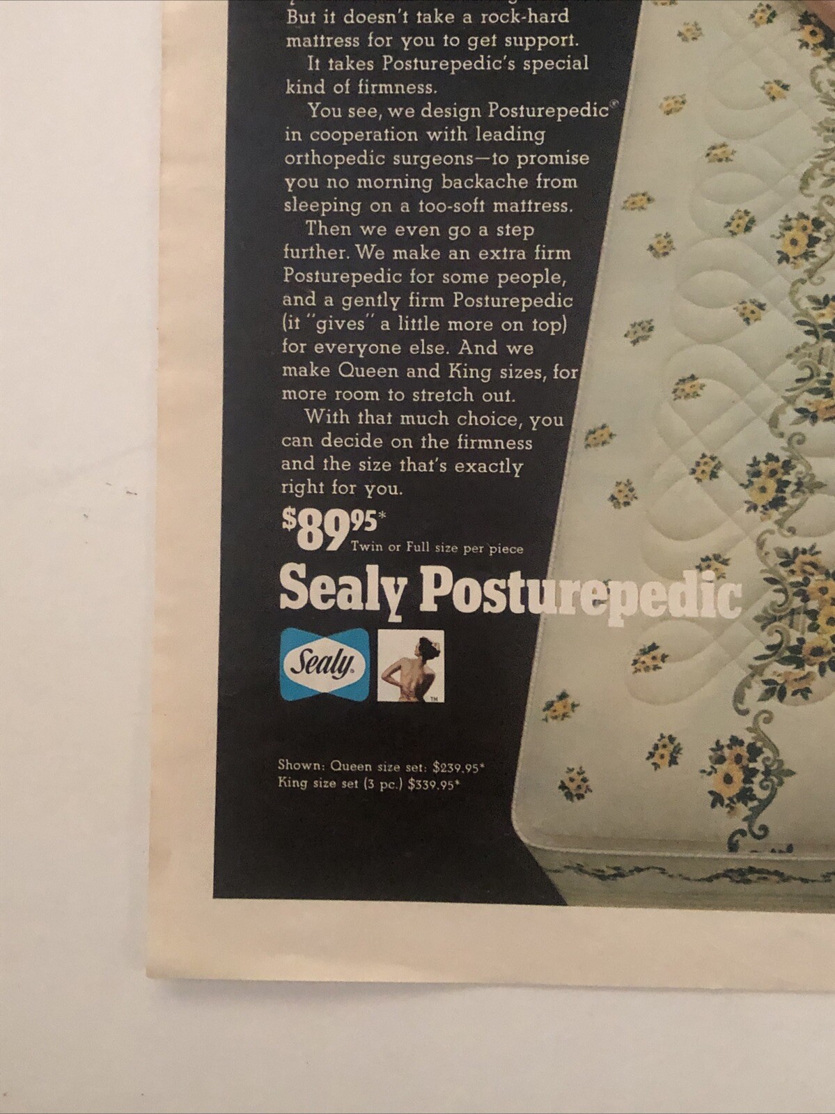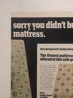 The 1968 Sealy Posturepedic Mattress print ad is a vintage collectible featuring a striking multi-color design promoting the brand's furniture products. This original magazine ad, measuring approximately 10"x14", showcases the theme of furniture and was created in the United States. The ad warns about the Posturepedic Mattress, highlighting the quality and comfort offered by Sealy in the 1960s. A nostalgic piece of advertising history, this vintage print ad is a charming reminder of mid-century style and design aesthetics.