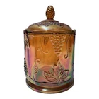 This is a 1970 Indiana Glass Harvest Grape 7" x 6.5" Carnival Amber Canister with Lid. It features an iridescent amber color, a Harvest Grape pattern, and is made of glass. Canisters like this are prized for their nostalgic appeal, distinctive color, and the quality of their carnival glass production. It’s a vintage piece that would be a unique addition to any collection of glassware or kitchen decor. The brand, Indiana Glass, is known for producing high-quality glass products, making this canister a valuable and sought-after item for collectors. Manufacturer: Indiana Glass Co. Pattern: Commonly known as Harvest Grape, or Harvest Maple Grape, featuring a distinctive raised grape design. Color: A base amber color with an iridescent, multi-hued finish that reflects various colors like purple, green, pink, and orange when the light hits it. Finish: The iridescent effect is a hallmark of carnival glass. Item: A lidded canister, used for storage or as a decorative item. It’s in mint condition without cracks, chips or other damage. Please see all the photos for all the details as they are a large part of our description. VERY RARE and EXQUISITELY BEAUTIFUL! 1970 Indiana Glass Harvest Grape 9.5" x 6.5" Carnival Amber Canister w/Lid MINT STORE POLICY: Condition is “New Old Stock” without retail box. Canister is 100 percent authentic and made in America. Sold as is, as found and as pictured. We aim to provide accurate and honest descriptions. All photos are an accurate representation of the item(s) you would be purchasing. Please zoom into the photos closely and judge the size, condition and content for yourself as our photos are a large part of our description. Please read descriptions carefully as we try to describe everything in as much detail as possible. Any concerns about the item’s condition, please address these concerns before purchasing. Most orders ship within 3-5 business days (Business days Mon-Fri) with USPS GROUND ADVANTAGE. *Expedited Shipping Option available at Checkout. To ensure a positive shopping experience for all of our customers, returns ARE accepted. Items can be returned in their original condition for a full refund within 30 days of receipt; however, if an item is damaged or defaced by the customer, or if a new item is returned opened, used or without the tag(s) attached, the refund amount will be reduced by up to 50% as allowed by eBay. By purchasing this item(s), you are agreeing to this store policy. All returns must go through eBay Returns Center. If for any reason you no longer want to keep your item(s), please open a return request through eBay - We will provide a return label free of charge. We abide by eBay's rules and regulations for returns, if they are met, you will be refunded. If you have any further questions about the return policy, please contact an eBay customer service agent. If there is an issue with your purchase, PLEASE do not leave negative feedback before you have contacted us to resolve any issues. If you have any questions or concerns, please contact us directly by selecting the 'CONTACT SELLER' option. We will work with you quickly to resolve any questions or concerns. If any of our national network of stores identify unreasonable, problematic transactions, we reserve the right to block any buyer from future purchases at our discretion. Buy with confidence and rest assured that you are dealing with an experienced store whose #1 priority is customer satisfaction. We list new items continuously, so add us to your favorites list and check back often as you never know what you'll find here. Look around in our store as we have a huge selection of fragrances, skincare, makeup and other beauty products as well as vintage and hard to find items. THANK YOU for shopping with us! We want you to be happy with your purchase! PLEASE don't forget to leave positive feedback and give 5 stars in Seller's Rating. The information provided here is strictly to be used for informational purposes only. We do not represent or warrant the product details, ingredients, nutritional value, or any other product information to be accurate or complete. Manufacturers improve or change their product formulas, update labels, and change their packaging. It is recommended that you do not solely rely on the information described in this listing. For any specific product information or concerns, it is recommended that you contact the manufacturer directly. Attention VeRO members: We are not affiliated or endorsed by the companies mentioned in this listing. All trademarks and copyrights are acknowledged, they are only used for informative description of the items offered for sale. All items are authentic as evidenced in our photos, legally acquired and owned, and hence; covered under First Sale Doctrine. Unlawful VeRO removal of this listing WILL constitute perjury and result in legal action.