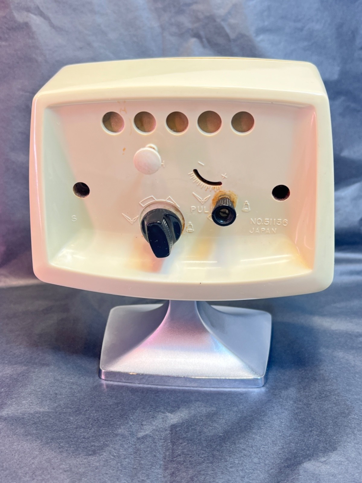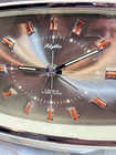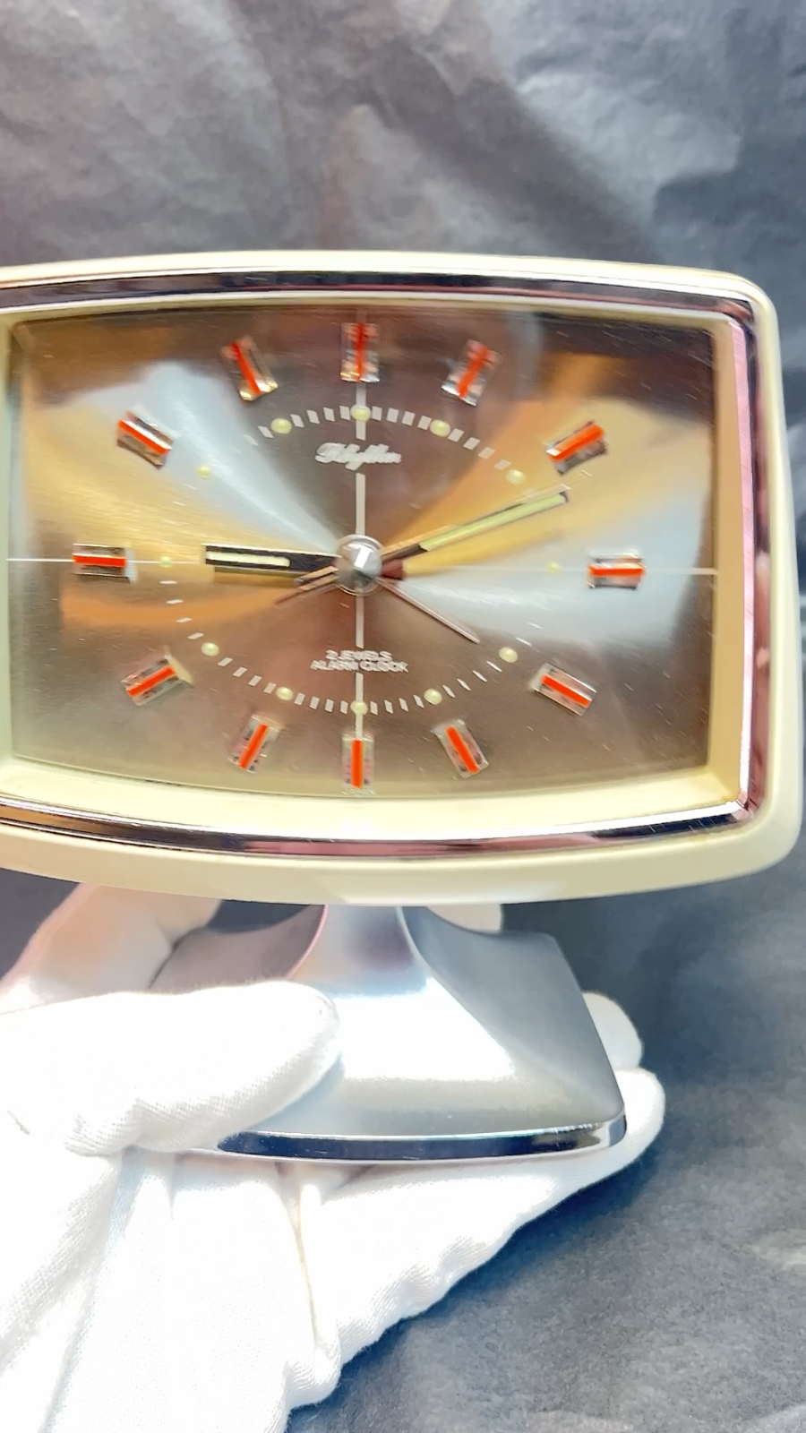 Hello dear customers, Offered for sale is a rare vintage Japanese Space Age / Mid-Century Modern alarm clock by Rhythm, a respected Japanese brand often associated with Citizen. This striking clock features a retro television-shaped design, mounted on a chrome-plated metal pedestal base. The case is made of quality plastic with a polished chrome front bezel, giving it a bold futuristic look typical of the Space Age era. The clock has a brushed gunmetal dial with applied chrome hour markers accented in red, along with chrome-plated hands and a central seconds hand. The hands and markers were originally luminous; the glow is now faint due to age, which is normal for vintage clocks. It is powered by a mechanical hand-wound movement with 2 ruby jewels. The clock has been fully tested and is in working order, running for over 24 hours. It has not been recently serviced and is offered as found, from an estate sale in Vienna, Austria. Overall, the clock is in excellent vintage condition, showing only minor age-related wear. Please review all photos carefully, as they are part of the description. Measurements: 6.25" height 6" width 3" depth A fantastic Space Age / Mid-Century Modern Japanese alarm clock, perfect for collectors or interior design enthusiasts. ========================== terms and conditions: All my items are as described, all authentic and original collectable items. They are described the best way I can. All questions will be answered on time depending on the time-zone differences. I ship only registered airmail worldwide with tracking number provided. Package will be securely wrapped to prevent any damage. If needed in double box. 100% refund guaranteed. Do not worry to contact me if you need assistance in any situation. Will do my best to satisfy my customers. Will combine shipping for multiple purchases. This item is shipped DDP (Delivery Duty Paid). All import duties and taxes have been prepaid - no additional charges on delivery to the buyer This item is shipped DDP (Delivery Duty Paid). All import duties and taxes have been prepaid - no additional charges on delivery to the buyer
