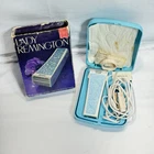 1970's Lady Remington Womens Electric Shaver MS-120 Vintage Baby Blue Pre-owned Used Item, 1970's Lady Remington Womens Electric Shaver Model: MS-120 Vintage Baby Blue Pre-owned used item with signs of wear to both the box and the item itself. Wear consistent with general use and age. Mostly wear contained to box and shaver carry case. Shaver has been used and will show signs of wear upon up close inspection. Overall shaver is in acceptable used condition when considering age. This shaver is a vintage item and in overall good condition. Shaver has been plugged in and power tested. ***Please view all pictures before purchasing.*** ****************************************** Shipped within 24-hours of payment. Excluding holidays and weekends. ******************************************