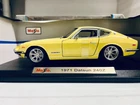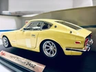 1971 Datsun 240Z Nissan Fairlady Z Custom Wheels Lowered Tuning Modified 2 cars First in 1/18 scale by maisto Second in 1/64 scale by Hotwheels The 1/18 scale car rolls