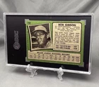 This is a 1971 Topps #450 Bob Gibson baseball trading card featuring a black border design. The card, in SGC 6 EX NM condition, showcases the Hall of Fame pitcher for the St. Louis Cardinals. It is an original vintage card made of paperboard and card stock, measuring 35 Pt. in thickness. The card is part of the Major League (MLB) set and relates to the MLB World Series.