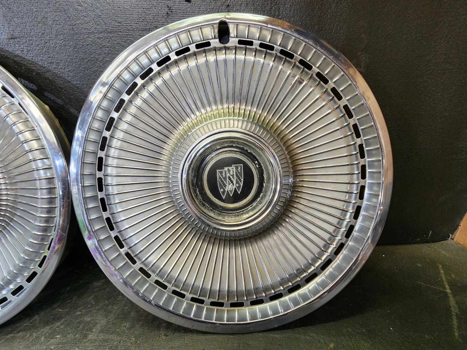 Pair of (2) Original OEM 15" 71 72 73 Buick Lesabre Hub caps center cap lug cover. in decent condition, some scratches, blemishes, & scuffs as expected for age and use. one has a small crack at the valve stem hole (see pics). Measurements are in photos, please look and make sure these will fit your application. please see photos for complete condition. These are Used hubcaps off of old classic cars that were driven on the road, so please see photos for complete condition as they are not all perfect. PART # - N/A please see photos for complete condition as they are the main part of the item description. Vintage 30s 40s 50s 60s 70s 80s classic car parts. These are used parts off of old classic cars that were driven on the road and used, so please see photos for complete condition as they are not all perfect. Most have some fading, dings, scuffing, chips, scratches, mineral staining, etc. parts could use a good polishing & cleaning to bring them back to full shine. We do not offer a warranty or returns on used parts. The majority of our parts are from classic cars that have been used for decades as well as sitting unused. we do not offer returns or warranties on any used electrical parts, lightbulbs, wiring, etc. electrical parts should be considered untested and non working unless stated otherwise. we do our best to describe items and show them as accurately as possible. It is up to the buyer to look at part numbers and measurements to make sure they are the correct fit to their vehicle. Check out more of my ebay page as we are going through and listing a ton of classic / vintage car parts & hubcaps from the the 20's 30's 40's 50's 60's 70's 80's 90's 00's and up. all different makes and models such as Ford Chevy Chevrolet GM Cadillac GMC camero nova Chevelle Nomad Bel Air Mercury Corvette Mustang Oldsmobile Pontiac Lincoln Dodge Plymouth Buick Chrysler Mopar Fairlane Volkswagen Cheiftain Challanger Charger 1500 4x4 muscle car hot rod rat rod Cars and Trucks 15in 14in 16in and so much more from full sets to sets of 2 and singles, you name it check us out!